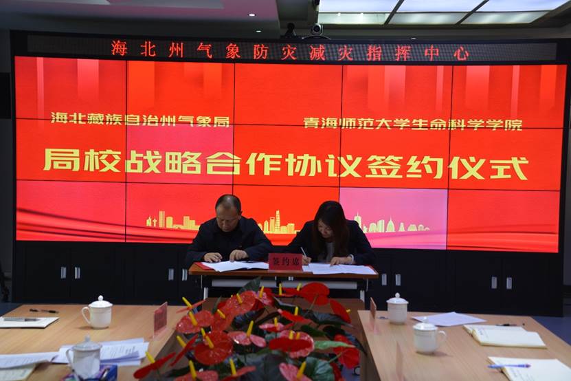 为深化“产-学-研”协同育人,推动学科建设与服务地方融合发展,充分发挥我校在生态保护、人才培养等方面的优势,色情论坛与青海省海北藏族自治州气象局经过多轮洽谈,近日由学院党委副书记马永贵代表学院在西海镇同海北藏族自治州气象局共同签订战略合作协议,并在海北牧业气象试验站揭牌“色情论坛