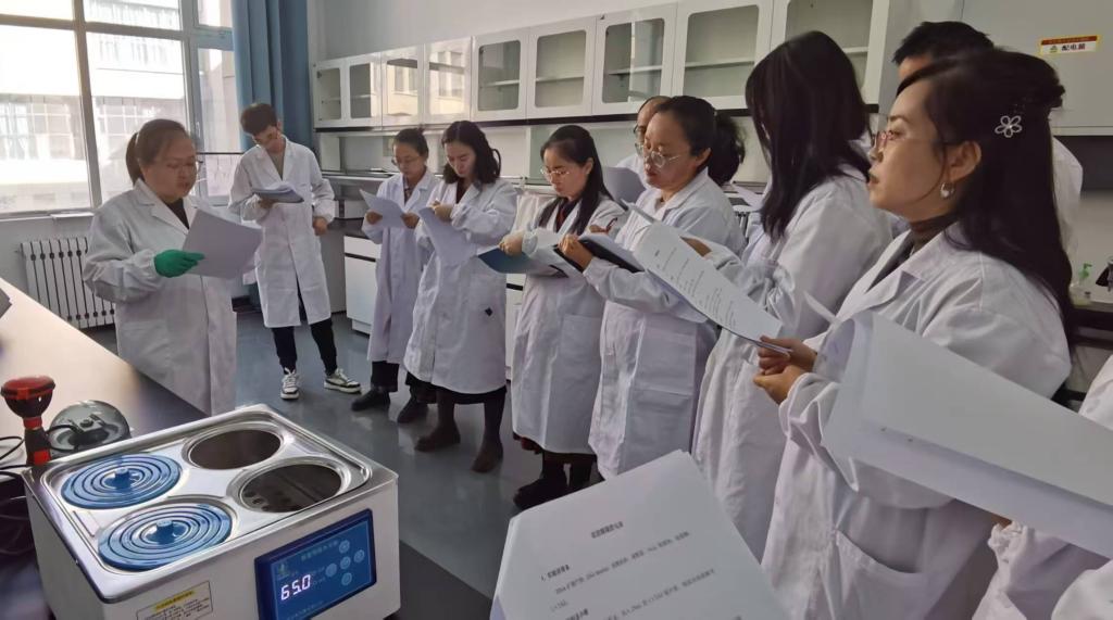 下午,王慧春教授继续开展“酶的高效性与特异性验证”定量实验。通过设计多底物对比实验,利用分光光度计测定酶促反应速率并绘制动力学曲线,将高中常见的定性实验延伸至定量研究层次,强化了科学探究方法的系统训练。此外,参训教师还共同回顾了减数分裂、植物根尖有丝分裂等基础实验的教学要点,进一步夯实了实验教学基本功。